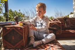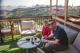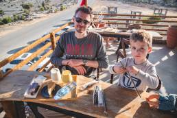 Nach unserer Vormittagsaktivität haben wir den Rest des Tages sehr ruhig angehen lassen. Zunächst haben wir ein wenig auf unserer Terrasse entspannt und Finn hat viel mit seinen Autos gespielt. Natürlich hat er sowohl die Fahrt in die Wüste als auch den Absturz des Autos in den Canyon nachgespielt.
