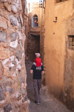Wir sind mit dem Sonnenuntergang in der Unterkunft angekommen, haben uns umgeschaut und anschließend bei unserem Host zu Abend gegessen. Das war wieder sehr nett, aber für Finn etwas spät. Der kleine Abenteurer ist abends immer so müde, dass er am liebsten schon um 18:30 Uhr im Bett liegt. Das lässt sich mit den omanischen Zeiten aber leider nicht sehr gut vereinbaren.