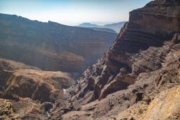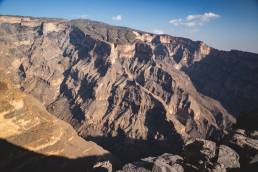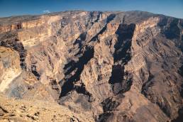 Der Jebel Shams ist mit rund 3.000 m der höchste Berg Omans und vor allem wegen der großen Schlucht, dem sogenannten Grand Canyon of Arabia, bekannt. Die Felswände, Plateaus und tiefen Einschnitte prägen eine markante Gebirgslandschaft, die sich je nach Tageszeit in unterschiedlichen Lichtstimmungen zeigt – besonders am Morgen und späten Nachmittag, wenn die Sonne die Felsen in warmere Töne taucht.
